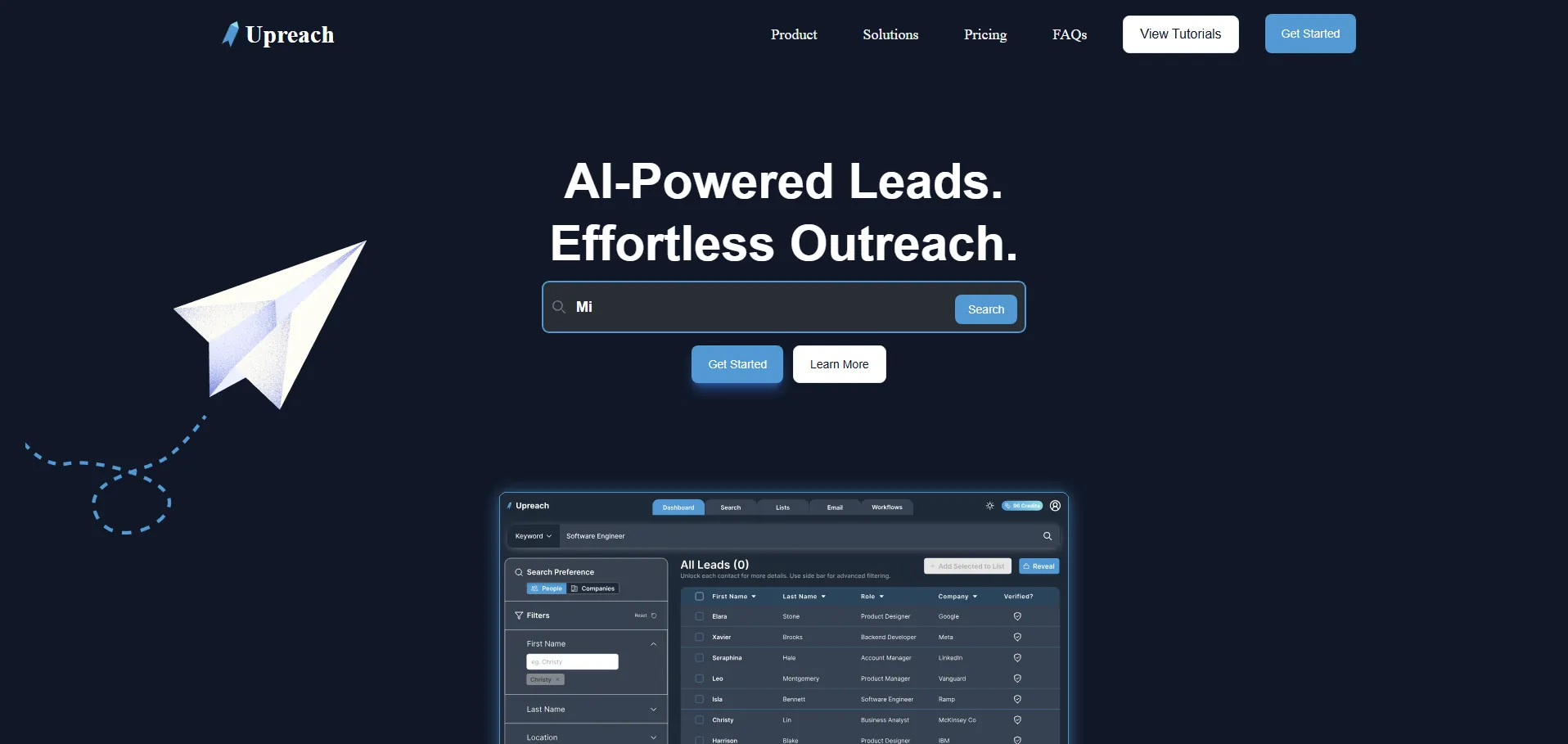 Upreach es una plataforma impulsada por inteligencia artificial que agiliza la captación y gestión de leads. Mediante consultas en lenguaje natural, analiza miles de fuentes de datos para localizar prospectos óptimos, filtrarlos según criterios personalizados y generar correos electrónicos altamente segmentados. Su motor de IA generativa automatiza desde la prospección inicial hasta el seguimiento, mejorando la eficiencia de tus campañas y elevando las tasas de respuesta.
