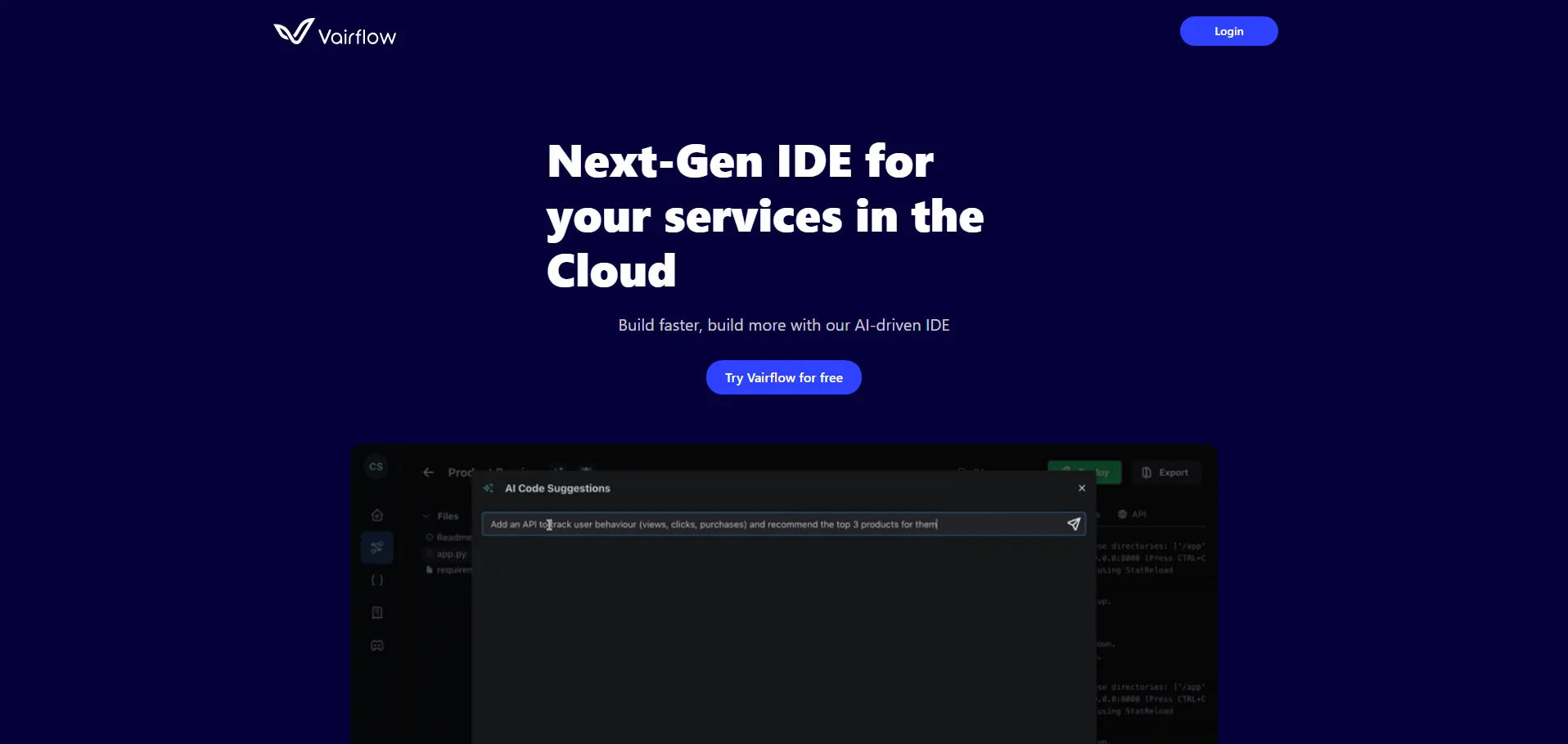 Vairflow es una herramienta de inteligencia artificial diseñada para optimizar los procesos de desarrollo y aumentar la productividad. Simplifica ideas complejas en componentes manejables para crear microservicios backend con Flask y FastAPI sin complicaciones. Su interfaz web y móvil versátil facilita el desarrollo y la implementación con un solo clic, eliminando la necesidad de configurar entornos locales. Impulsado por Code Llama, ofrece asistencia de IA para la generación, completado y explicación de código, además de rastrear dependencias entre servicios. Con próximas funciones de edición en vivo y vista previa de aplicaciones completas, Vairflow acelera el ciclo de desarrollo. Admite implementaciones en AWS, Google Cloud y servidores locales, garantizando rentabilidad y colaboración fluida.