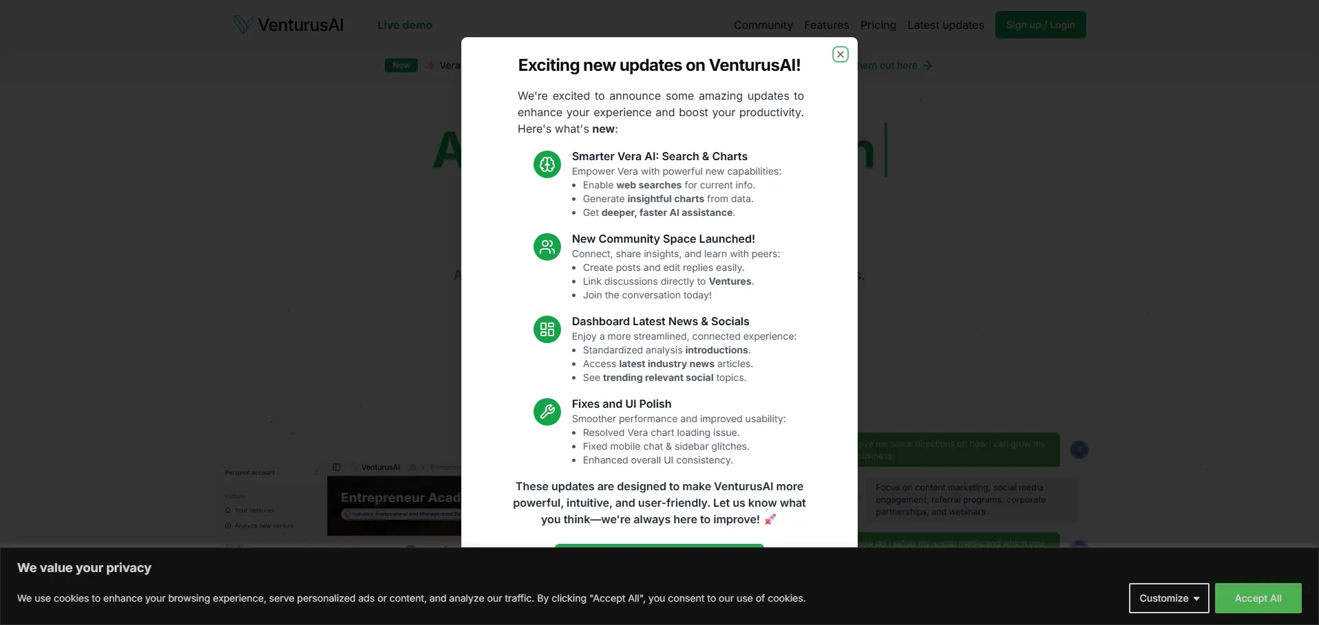 Visita el sitio oficial de VenturusAI para acceder a recursos, tutoriales y soporte. Síguelos en Twitter para recibir las últimas novedades y actualizaciones.
