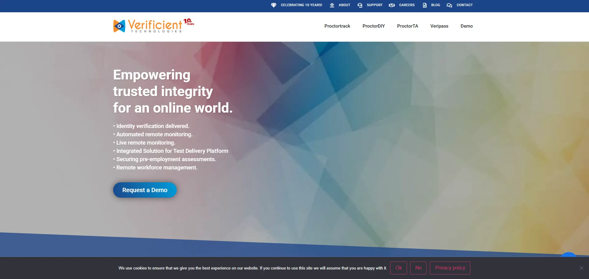 Verificient es una suite de herramientas basadas en inteligencia artificial dedicada a la verificación y monitorización de identidad en línea. Incluye Proctortrack para supervisión remota automatizada, Proctordiy para vigilancia en vivo, Proctorta para la integridad de exámenes presenciales y Veripass para la verificación segura de usuarios. Gracias a la biometría, visión artificial y aprendizaje automático, garantiza identidad continua, detección de fraudes y cumplimiento normativo con reconocimiento facial en tiempo real.