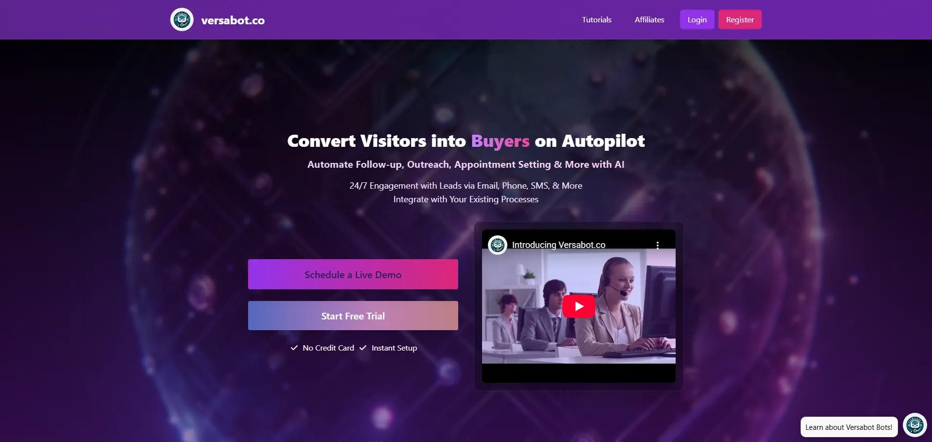 Versabot.co es una plataforma sin código que permite crear chatbots omnicanal personalizables para mejorar la comunicación con clientes. Centraliza canales como correo electrónico, SMS, WhatsApp y chat web, y automatiza flujos de trabajo gracias a su integración con más de 6.000 aplicaciones mediante Zapier. Incluye campañas de llamadas automáticas con voces realistas de ElevenLabs, análisis avanzados de interacción y la opción de desarrollar plugins a medida. Con Versabot, las empresas liberan recursos al automatizar tareas repetitivas y optimizar la experiencia del cliente.