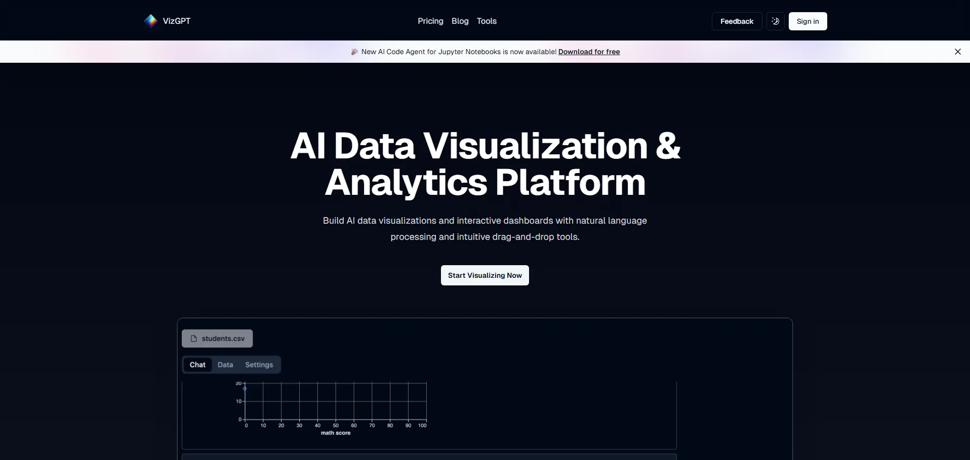 vizGPT es una plataforma de visualización de datos impulsada por inteligencia artificial que convierte conjuntos de datos complejos en gráficos claros y atractivos. Gracias a su comprensión contextual, mantiene el hilo de la conversación y recuerda interacciones pasadas para ofrecer narrativas de análisis coherentes. Su interfaz sin código, basada en arrastrar y soltar o en comandos en lenguaje natural, permite a cualquier usuario generar y modificar visualizaciones sin conocimientos de programación. Además, incorpora potentes herramientas de transformación y perfilado de datos para preparar y explorar información de forma rápida y precisa.