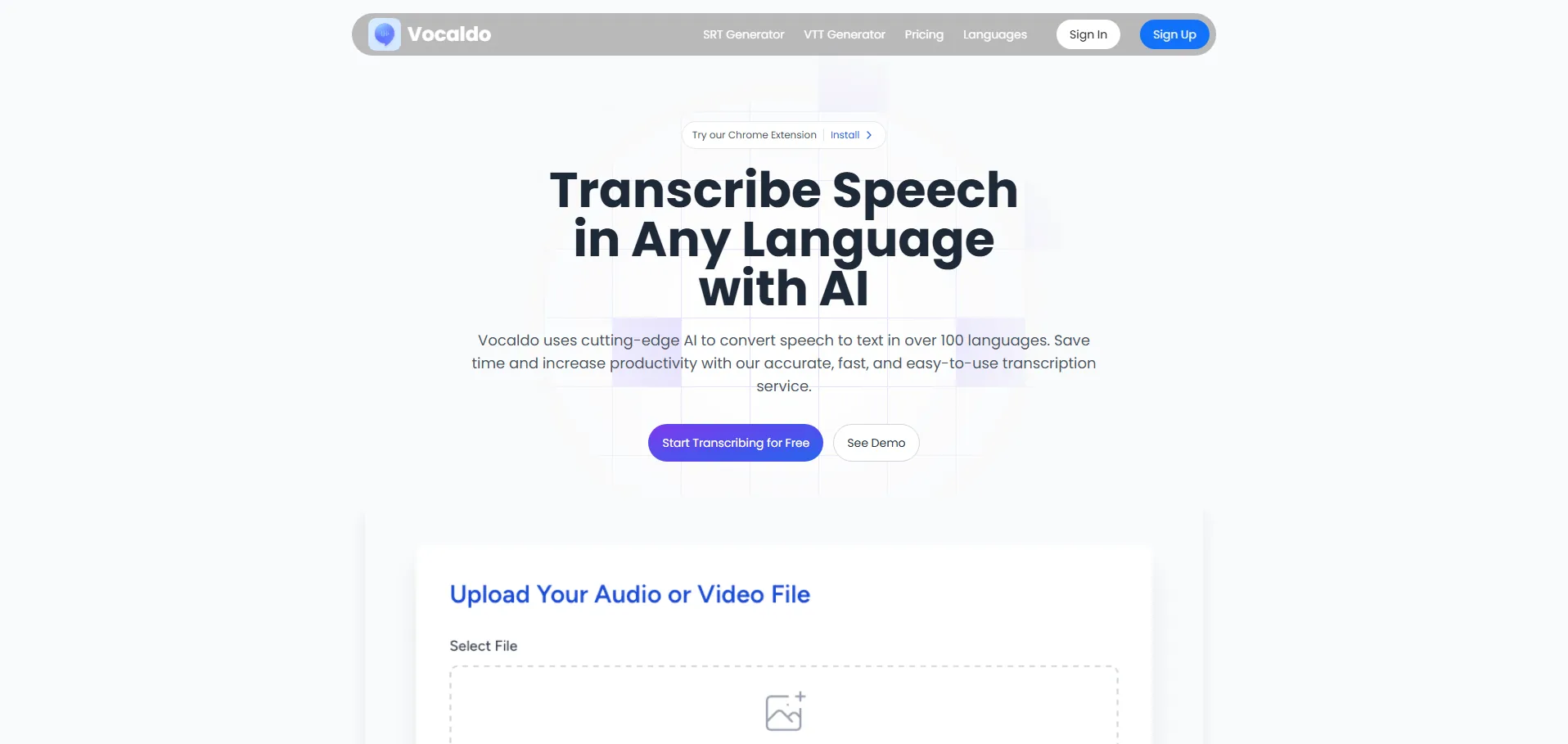 Vocaldo AI es una solución de transcripción de voz a texto impulsada por inteligencia artificial que convierte archivos de audio y vídeo en texto con gran precisión en más de 100 idiomas. Su plataforma segura procesa el contenido en minutos y ofrece múltiples formatos de salida (TXT, SRT, VTT) para adaptarse a cualquier necesidad. Además, permite traducir las transcripciones a diversos idiomas, incrementando la accesibilidad y eficiencia en la comunicación.