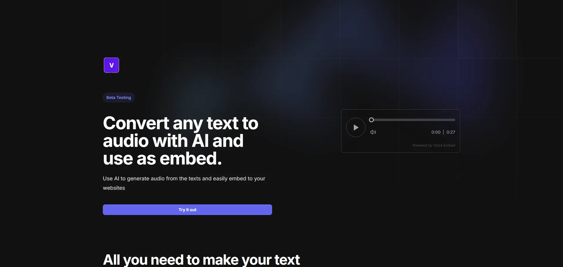 Voice Embed es una solución SEO-friendly para convertir texto en audio con voces naturales de alta calidad. Su interfaz de arrastrar y soltar permite incrustar fácilmente reproductores de audio en blogs y sitios web sin necesidad de programación. Ofrece almacenamiento gratuito en la nube para guardar, gestionar y recuperar grabaciones en cualquier momento. Además, simplifica la distribución de contenido de audio con un proceso de un solo clic, mejorando la interacción de la audiencia y adaptándose a distintas preferencias de consumo.