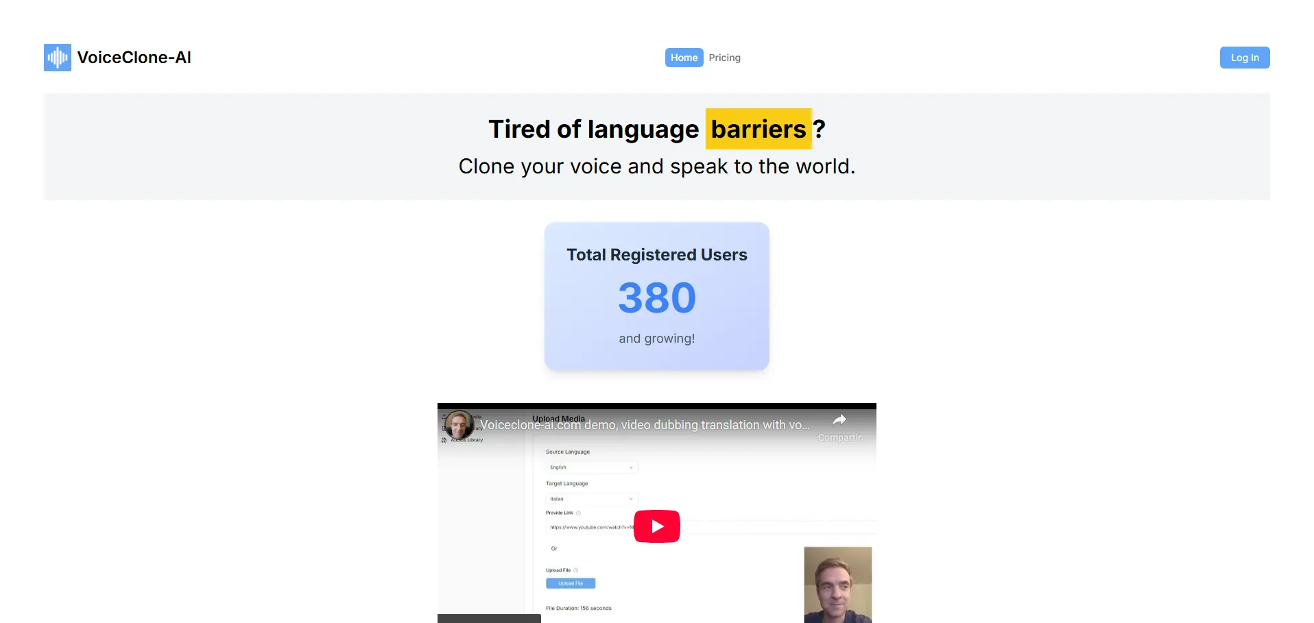 VoiceClone-AI es una plataforma avanzada de clonación de voz y doblaje multilingüe impulsada por IA, diseñada para optimizar la producción de contenido audiovisual. Permite recrear voces con entonación y emoción originales, ofreciendo resultados naturales y profesionales. Con soporte para 29 idiomas y compatibilidad con archivos MP4 y MP3, facilita la localización global de vídeos y la creación de voces en off de alta calidad en minutos.