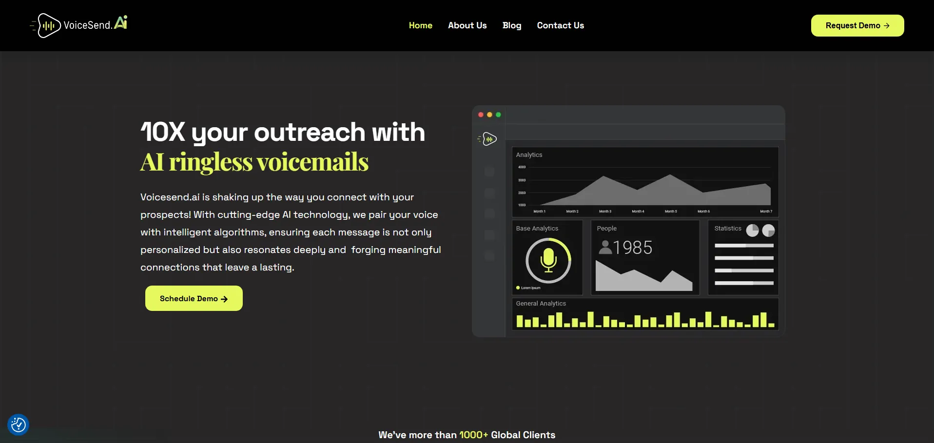 Voicesend AI es una plataforma de mensajería de voz diseñada para enviar mensajes directamente al buzón de voz sin timbre, mejorando la comunicación discreta y efectiva. Ideal para empresas y profesionales que buscan automatizar sus envíos ilimitados, personalizar mensajes y medir resultados con análisis en tiempo real.