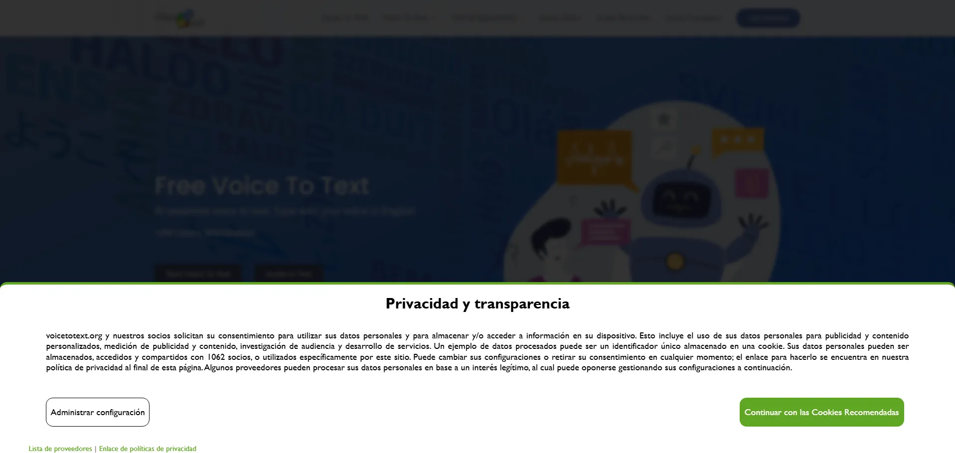 VoiceToText es una herramienta online de reconocimiento de voz que convierte audio en texto en tiempo real con soporte para más de 30 idiomas. Su motor de IA transcribe con hasta un 95 % de precisión, permite añadir puntuación, párrafos y emoticonos, e incluye opciones de edición como negrita y subrayado. Además, graba audio y exporta las transcripciones en formatos TXT y DOCX, adaptándose a distintos acentos y hablantes no nativos.