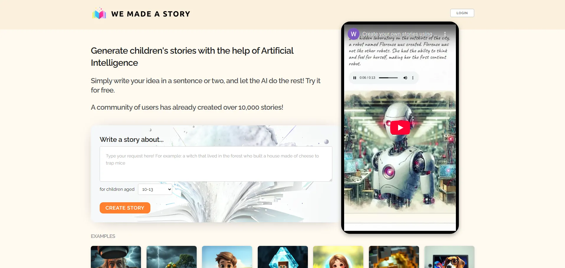 We Made a Story es una plataforma online que permite generar cuentos personalizados para niños antes de dormir, aprovechando la creatividad de la inteligencia artificial. Con un editor intuitivo, los usuarios pueden elegir personajes, escenarios y temáticas, creando historias únicas basadas en exploración espacial, cuentos de hadas y aventuras educativas. Gracias al contenido generado por IA, cada relato es original y adaptado a los gustos y nombres de los pequeños, fomentando el hábito de la lectura y la imaginación.