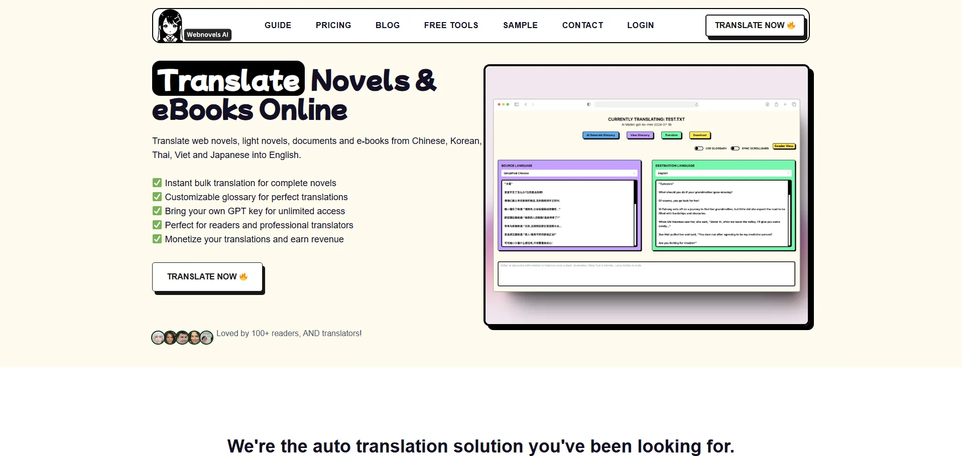 Webnovels AI es una plataforma de traducción en línea especializada en convertir novelas y documentos de literatura asiática—chino, japonés y coreano—al inglés de forma rápida y precisa. Gracias a su sistema de traducción masiva instantánea, los usuarios pueden procesar libros completos en segundos con mínima edición manual. Incorpora glosarios personalizables para mantener la coherencia terminológica y un motor de IA que aprende de tus ajustes para perfeccionar futuras traducciones. Además, admite múltiples formatos de archivo para facilitar la descarga y lectura en cualquier dispositivo.