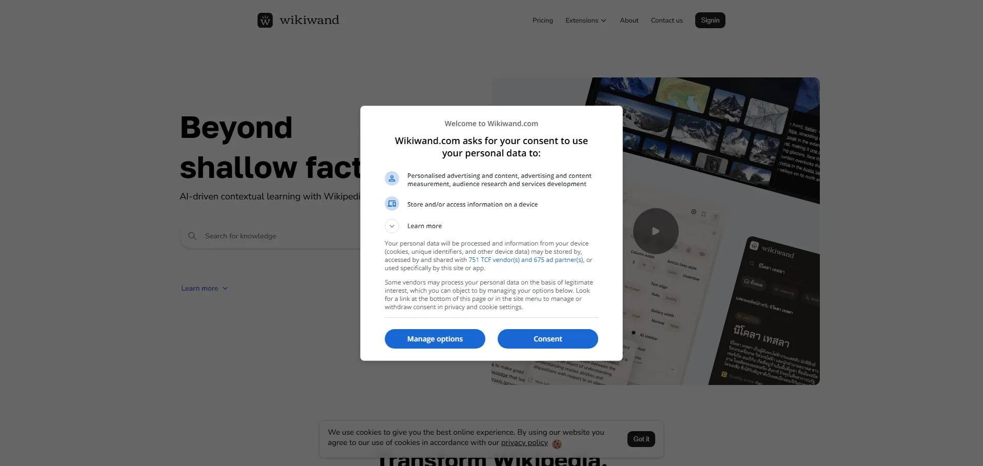 Wikiwand es una extensión y plataforma que mejora la experiencia de navegación y lectura en Wikipedia mediante herramientas contextuales impulsadas por inteligencia artificial. Ofrece líneas de tiempo interactivas, mapas integrados y resúmenes enriquecidos para agilizar la búsqueda de información. Con soporte multilingüe y temas personalizables, facilita el acceso a referencias directas y recursos adicionales, optimizando la investigación y el aprendizaje en línea.