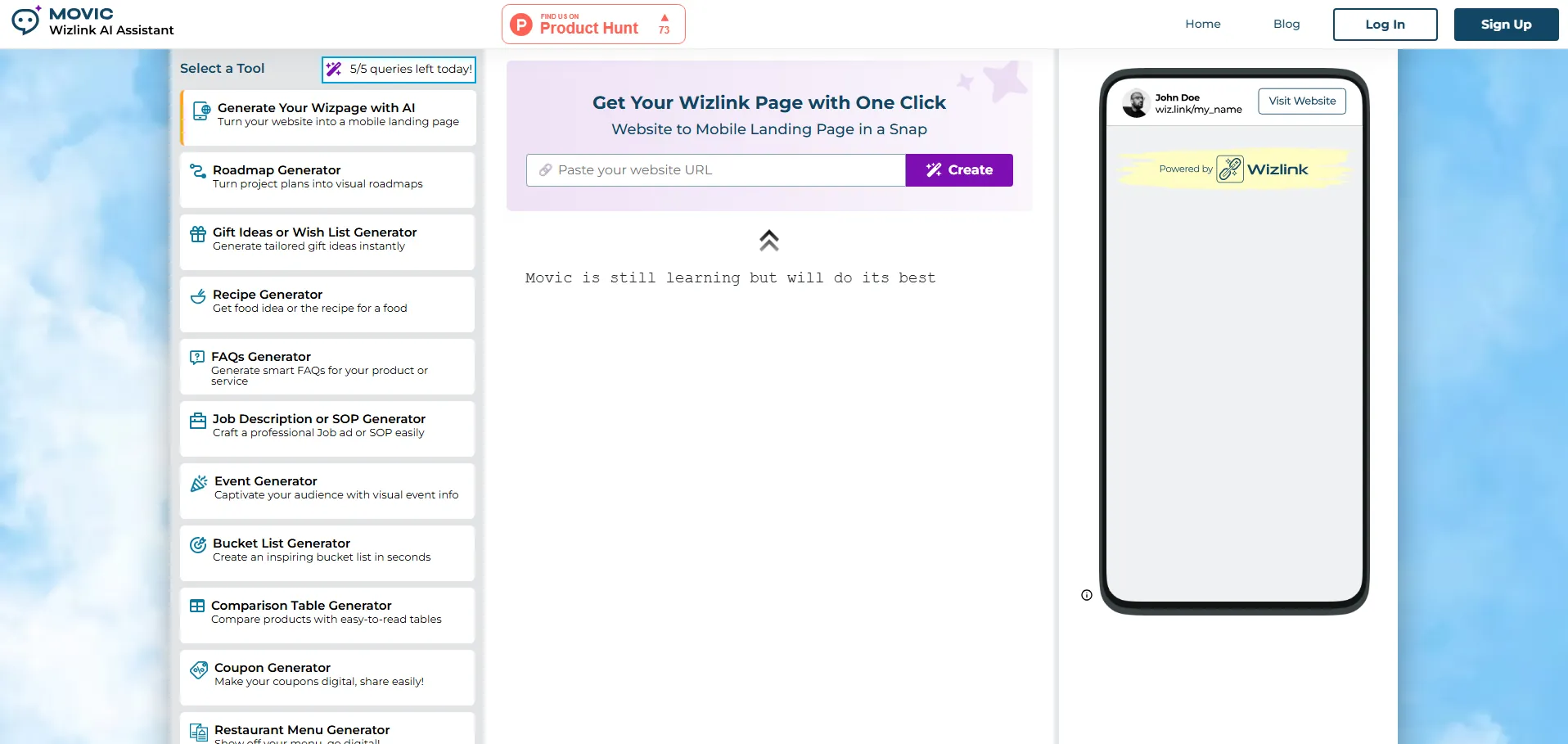 Wizlink AI es un generador de páginas de aterrizaje impulsado por inteligencia artificial, desarrollado por Claspo. Permite crear y publicar sitios web personalizados en un solo clic, empleando más de 30 plantillas adaptables a dispositivos móviles. Además de landing pages, ofrece sugerencias de contenido para recetas, ideas de regalos, preguntas frecuentes, descripciones de empleo, procedimientos operativos estándar y comparativas de productos, todo con un editor intuitivo que agiliza el flujo de trabajo y mejora la conversión.