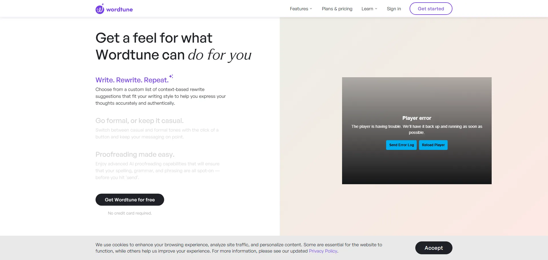 Wordtune es un asistente de redacción potenciado por inteligencia artificial que acelera y enriquece tus textos. Permite reescribir, parafrasear y resumir contenido de textos y vídeos con sugerencias contextuales personalizadas. Incorpora corrección gramatical y de estilo para garantizar escritos claros y profesionales. Compatible con navegadores, aplicaciones de escritorio y móviles, se integra fácilmente en tu flujo de trabajo para mejorar la productividad y la calidad de la comunicación.