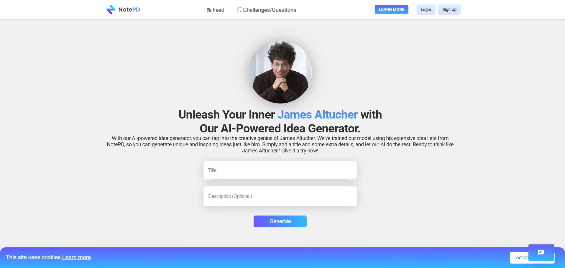 Write with James es un generador de ideas impulsado por IA que canaliza el enfoque creativo de James Altucher. Basado en extensas listas de ideas del Bloc de notas, esta herramienta permite introducir un título y detalles adicionales para que la IA genere propuestas originales e inspiradoras. Ideal para contenidos de blog, proyectos empresariales o ejercicios de innovación, Write with James ayuda a desbloquear la creatividad y pensar como un reconocido emprendedor.