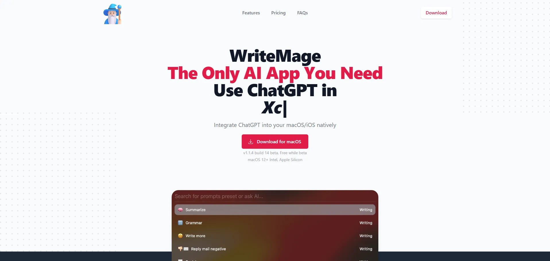 WriteMage es una aplicación de IA para macOS e iOS diseñada para optimizar la eficiencia del flujo de trabajo mediante integración nativa con ChatGPT. Funciona como un complemento de Spotlight en macOS, ofreciendo respuestas contextuales sin copiar y pegar. Su función de memoria recupera conversaciones previas, mientras que el editor gráfico de indicaciones permite personalizar prompts. En iOS, se integra con el teclado para un uso fluido en múltiples apps. Ofrece una licencia de por vida para quienes prefieren evitar suscripciones recurrentes.