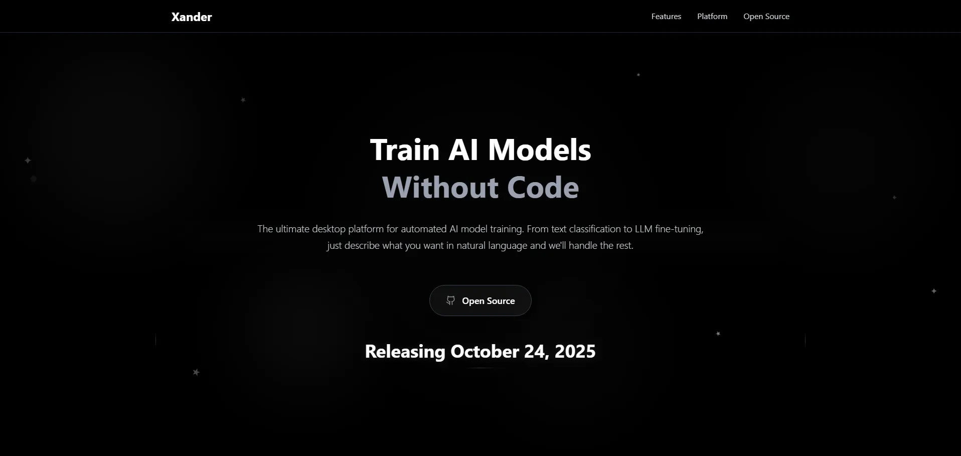 Xander es una plataforma sin código de inteligencia artificial dirigida a quienes desean desarrollar e integrar modelos de IA sin requerir habilidades de programación. Facilita etapas como la limpieza y preprocesado de datos, así como la puesta en producción de modelos, democratizando el uso de la IA. En Xander, se pueden crear soluciones de regresión para estimar precios o anticipar ventas, y de clasificación como detección de fraude o reconocimiento de imágenes. La plataforma incorpora análisis de texto, ideal para evaluar sentimientos o moderar contenidos, y permite diseñar chatbots para optimizar la atención al cliente o sistemas de e-learning. Además, cuenta con herramientas de etiquetado de imágenes orientadas a sectores como salud y agricultura, y dispone de detección de anomalías para aplicaciones en ciberseguridad o mantenimiento predictivo.