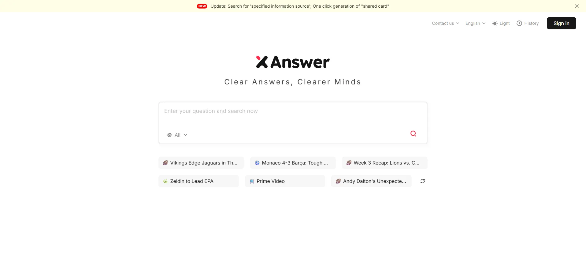 XAnswer es un motor de búsqueda gratuito con IA, diseñado para proporcionar respuestas directas de fuentes de información específicas. Permite generar tarjetas compartidas con un solo clic, personalizar la interfaz con modos claro y oscuro y consultar el historial de búsquedas para recuperar datos previos de forma ágil. XAnswer facilita el acceso a información precisa sin la complejidad de los buscadores tradicionales.