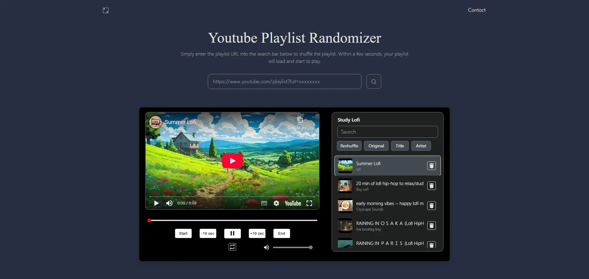Una herramienta web que potencia la experiencia musical en YouTube al permitir reproducir listas completas de forma verdaderamente aleatoria. Solo necesitas pegar la URL de tu lista de reproducción para mezclar cientos de vídeos sin limitaciones, suprimir anuncios y disfrutar de la reproducción en segundo plano incluso con la pantalla apagada. Incluye funciones de bucle para canciones individuales o listas completas, garantizando un flujo de música ininterrumpido y sin distracciones.