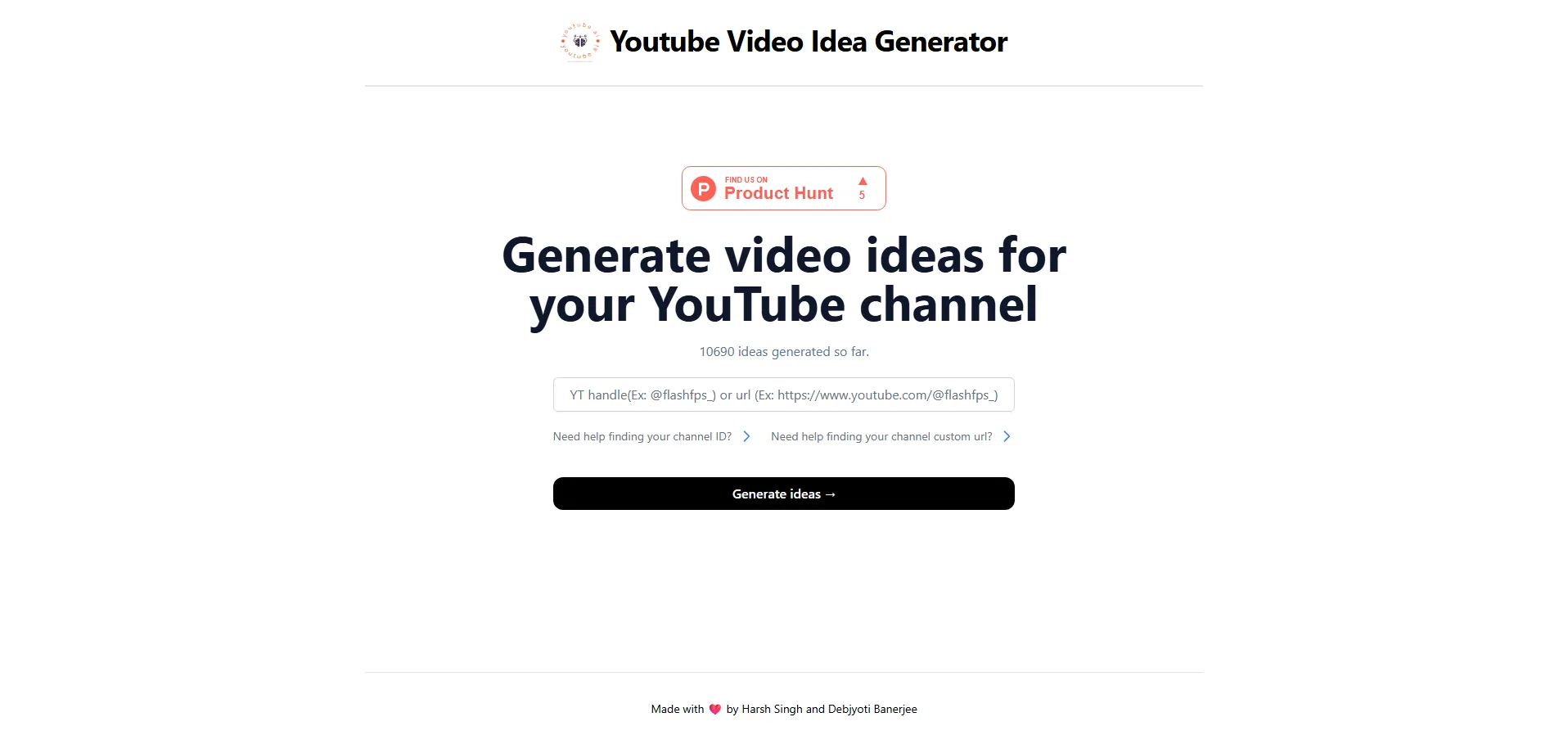 Visita el sitio oficial de YT Ideas para empezar a generar ideas de inmediato. Síguenos en nuestro canal de YouTube para tutoriales y casos de uso. Encuentra actualizaciones y tips en Twitter.