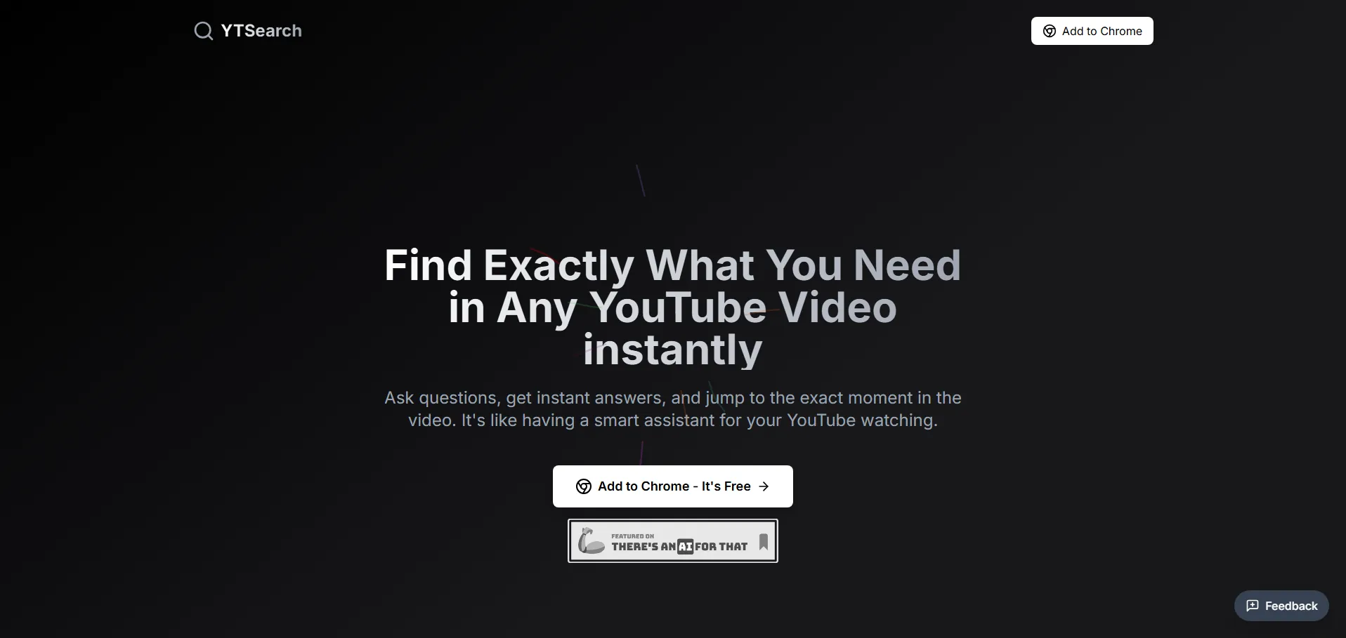 YTSearch es una extensión de Chrome diseñada para optimizar la navegación y búsqueda de videos en YouTube. Permite formular preguntas específicas sobre el contenido y recibir respuestas instantáneas con marca de tiempo, accediendo directamente a los fragmentos relevantes. Con su integración nativa en la interfaz de YouTube, YTSearch ofrece una experiencia intuitiva y eficiente, eliminando desplazamientos innecesarios.