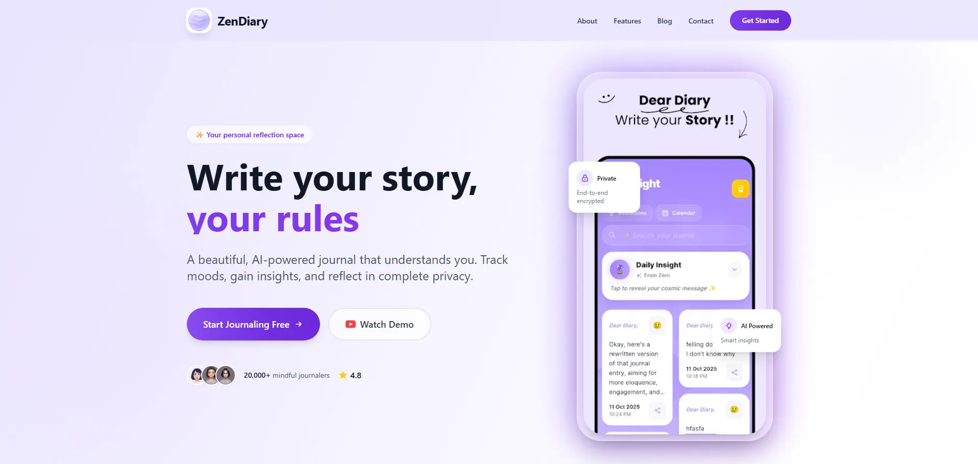 ZenDiary es una aplicación de diario personal potenciada por IA que impulsa el crecimiento emocional y el autodescubrimiento. Emplea procesamiento de lenguaje natural avanzado para detectar patrones de pensamiento y emociones, ofreciendo retroalimentación personalizada. Con indicaciones de escritura dinámicas, se ajusta a los estados de ánimo de cada usuario. Su análisis emocional presenta gráficos interactivos que facilitan la comprensión de las experiencias y promueven el desarrollo personal. Además, incluye un sistema de seguimiento de objetivos que vincula reflexiones diarias con metas personales y profesionales. La privacidad está garantizada mediante cifrado de nivel empresarial y cuenta con una suite de mindfulness con meditaciones y registro de estado de ánimo.