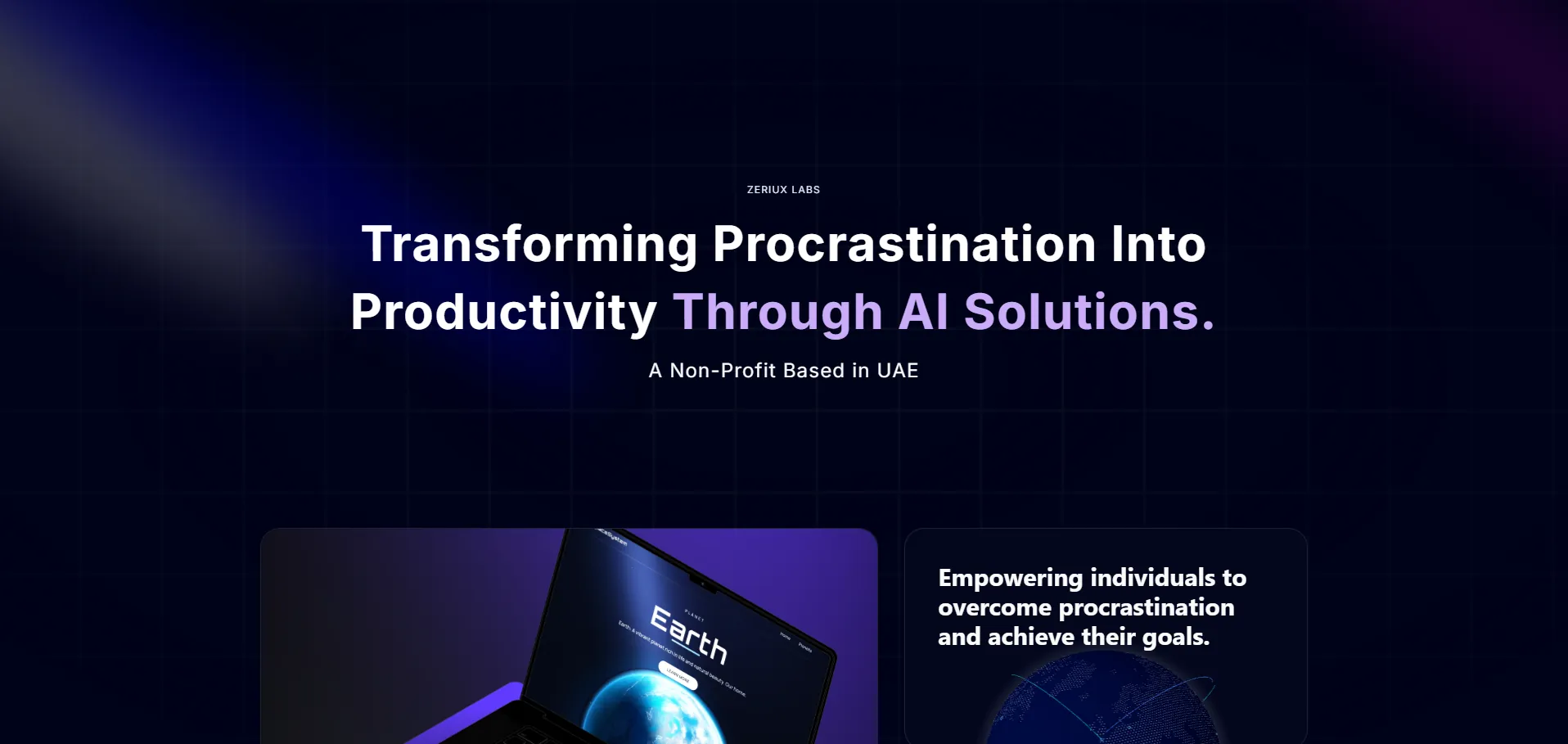 Zeriux Labs es una organización sin fines de lucro con sede en los Emiratos Árabes Unidos, dedicada a potenciar el bienestar humano y empoderar comunidades a través de tecnología inteligente. Con experiencia en inteligencia artificial, robótica y desarrollo de software, ofrece soluciones centradas en el usuario como Proact+ (una app antiprocrastinación), gafas con subtítulos en vivo para la comunidad sorda y Holoband, un dispositivo portátil con hologramas 3D y asistente de voz sin conexión.